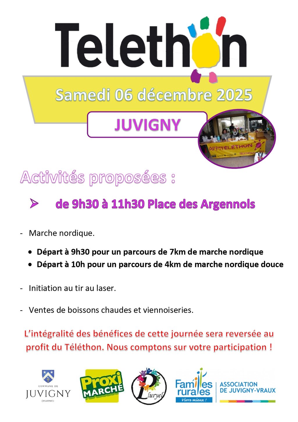Cette année encore, la commune se joint avec les associations du village pour le Téléthon le samedi 6 décembre 2025.