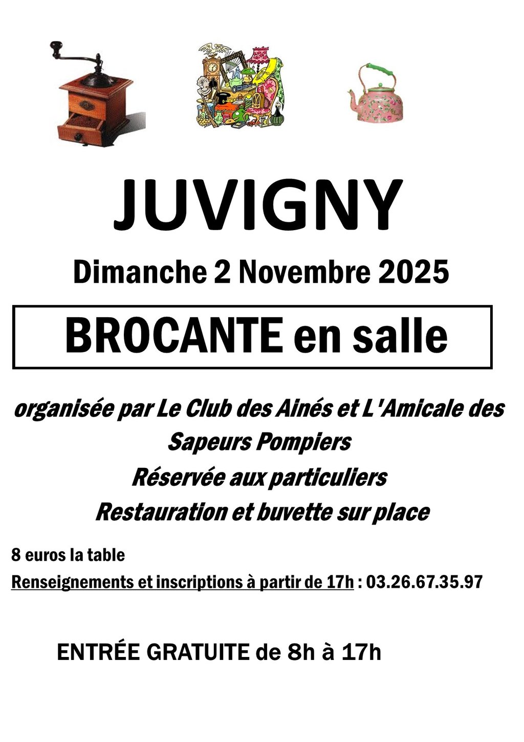 Brocante en salle organisée par le Club des Ainés Juvignots et l'Amicale des Sapeurs Pompiers de Juvigny à la salle polyvalente